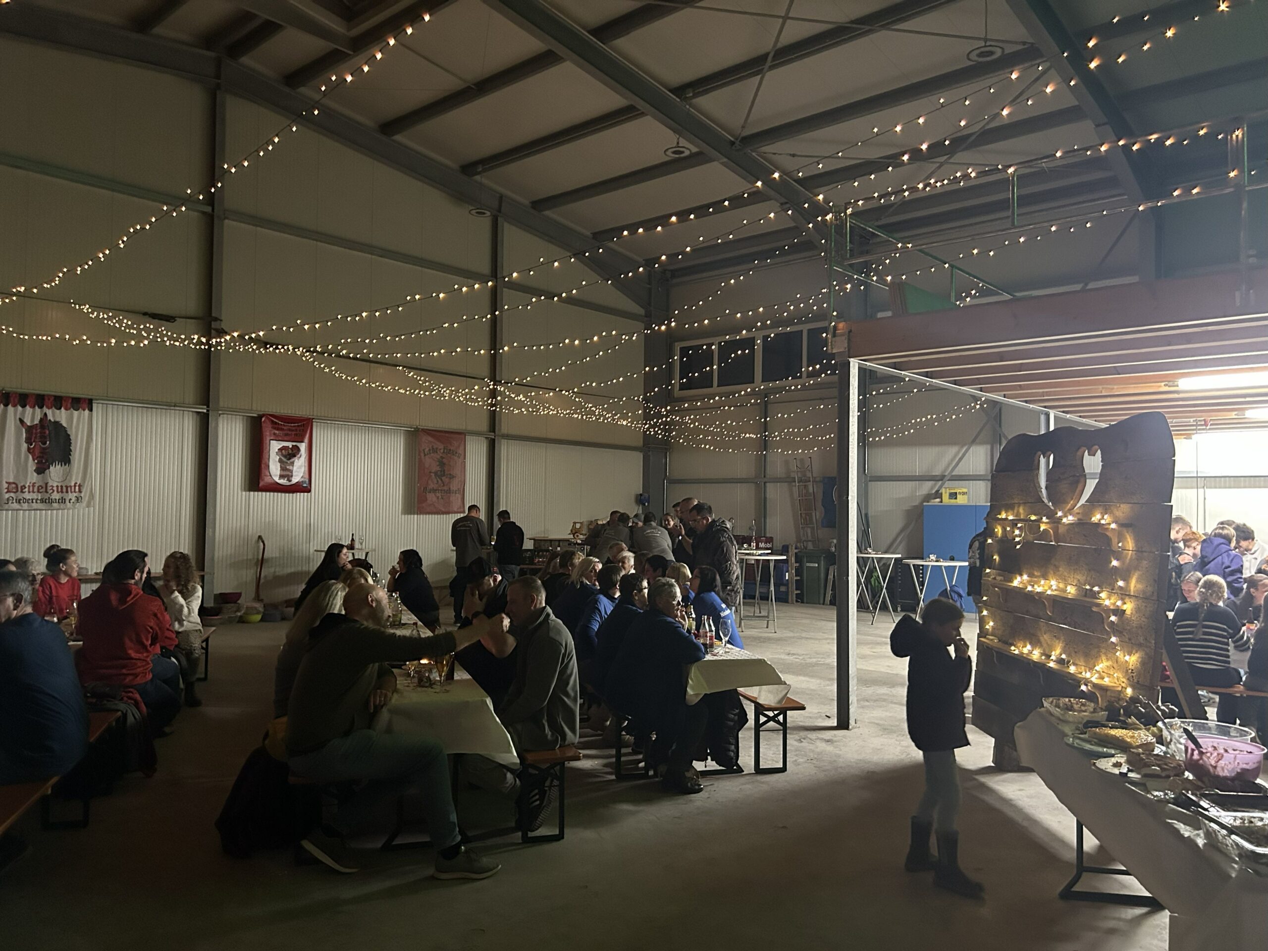 durften wir am 15.11. ab 18:30 mit den vier Zünften Eschachdeifel, Lehr-Hexen, Schnurris und Schlierbachnarren lecker essen und trinken. Gegen einen kleinen Unkostenbeitrag gab es vier verschiedene Sorten Fleisch, Kartoffeln und Käse aus dem Smoker von Ralf Münzer, ein tolles Salatbuffet und reichhaltig Desserts – lecker!